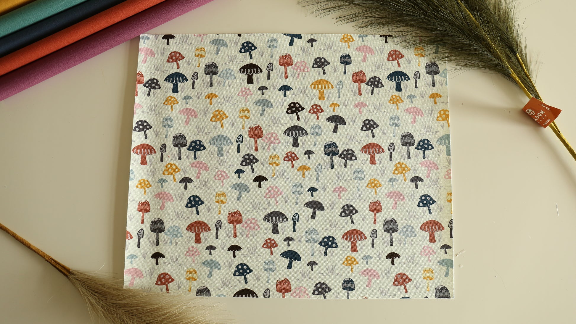 Materials: Cotton Fabric(mushroom), Heat n bond, tissue paper