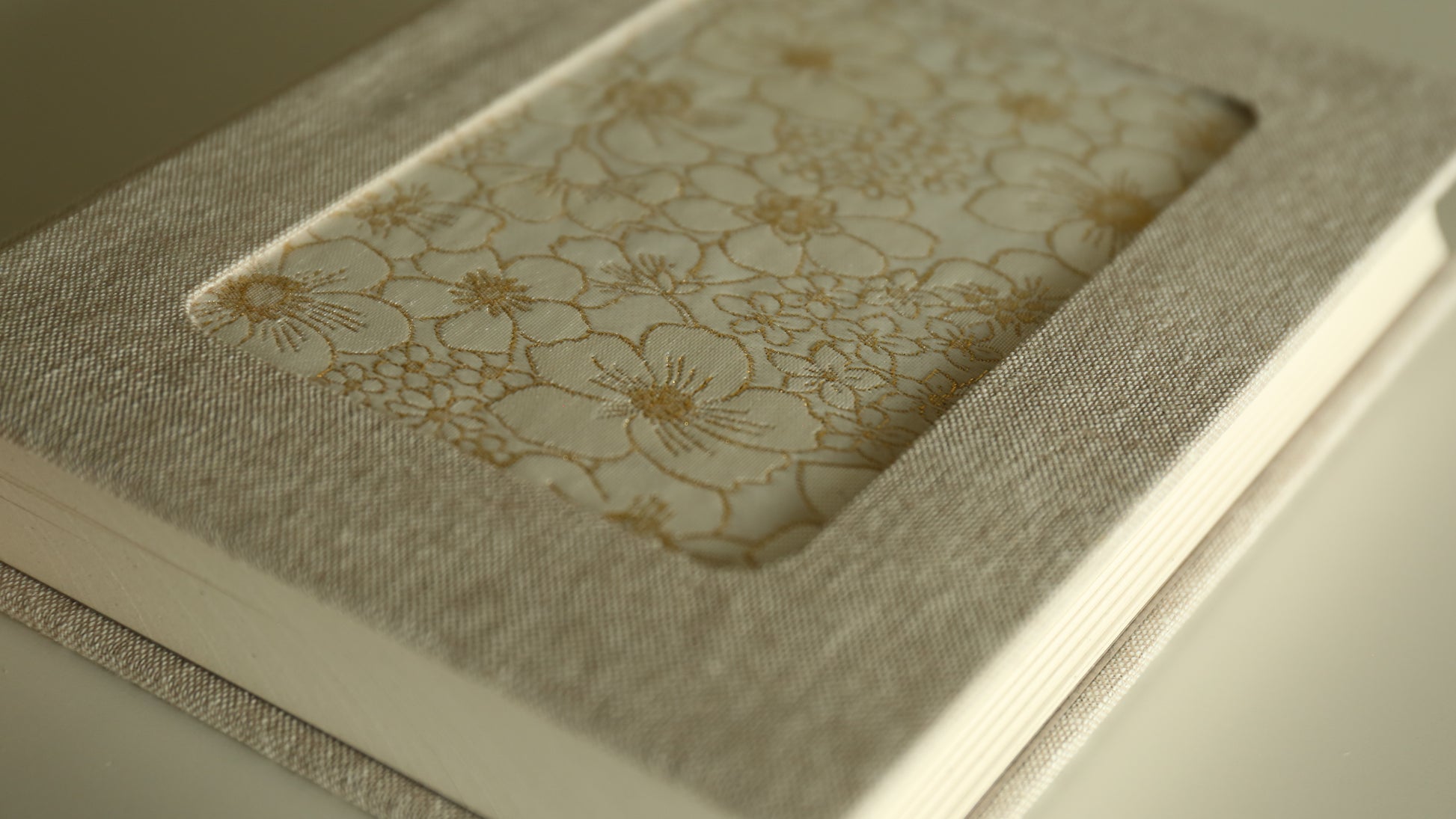 Materials: 70lb Text Smooth Royal Sundance Birch Paper, 160g/m2 lb FABRIANO paper, Waxed Linen Thread, PVA Glue, Book Board, Cotton Fabric, traditional Chinese jacquard fabric (Flower)